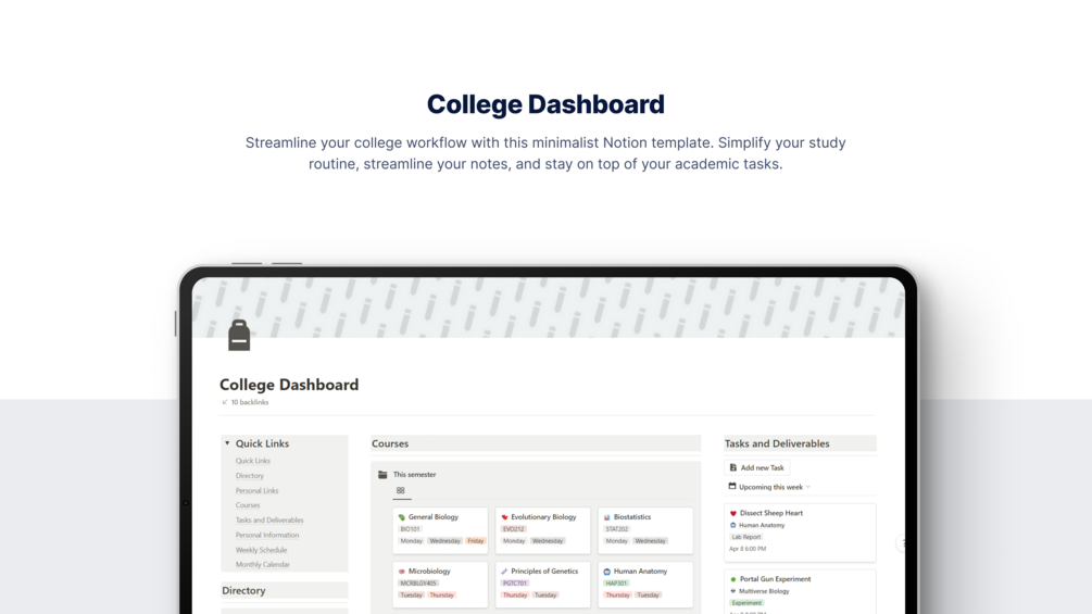 Say goodbye to academic chaos and hello to organized success with our College Student Dashboard Notion template. Upgrade your student life today and streamline your college experience! #CollegeDashboard #NotionTemplate #AcademicExcellence